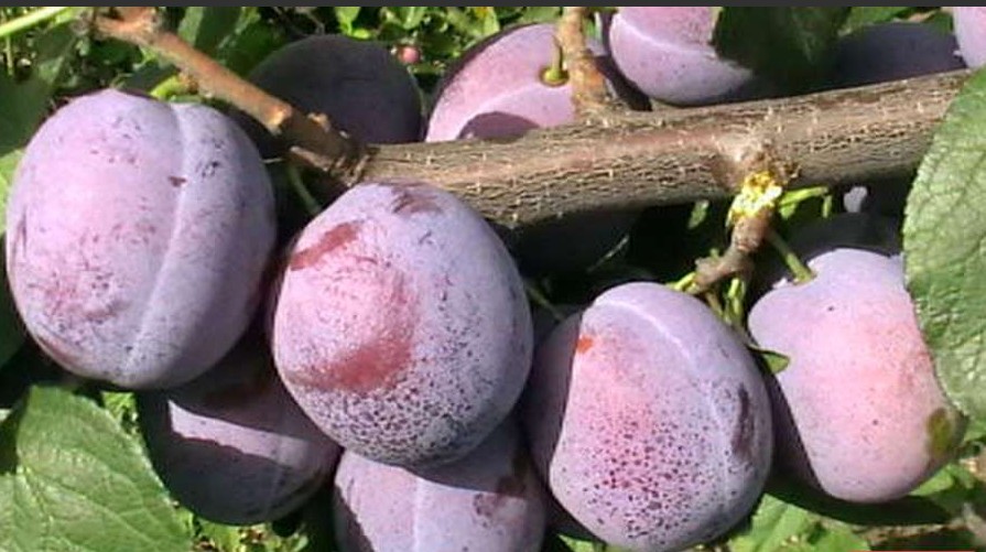 Саженец Венгерки Кубанской — крепкое высокопродуктивное дерево с аккуратной округло-овальной кроной. Плоды крупные (около 35 г), вытянутые с заметным брюшным швом, тёмно-фиолетовой кожицей с восковым налётом. Мякоть плотная, зеленовато-жёлтая, сочная, с гармонично кисло-сладким вкусом. Сорт универсального назначения — хорош для свежего употребления, заморозки и переработки.